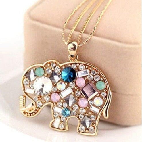 Crystal Rhinestone Colorful Elephant Necklace