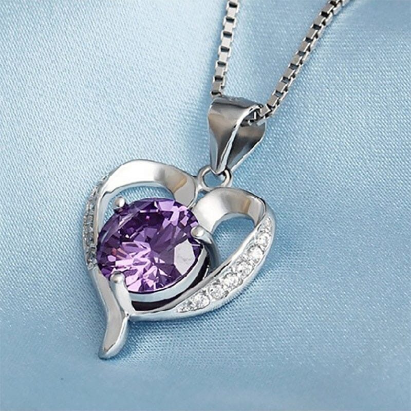 Heart Shaped Amethyst Pendant Necklace - 925 Sterling Silver