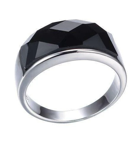 High Quality Black Agate Gem Stone 925 Sterling Silver Men Ring