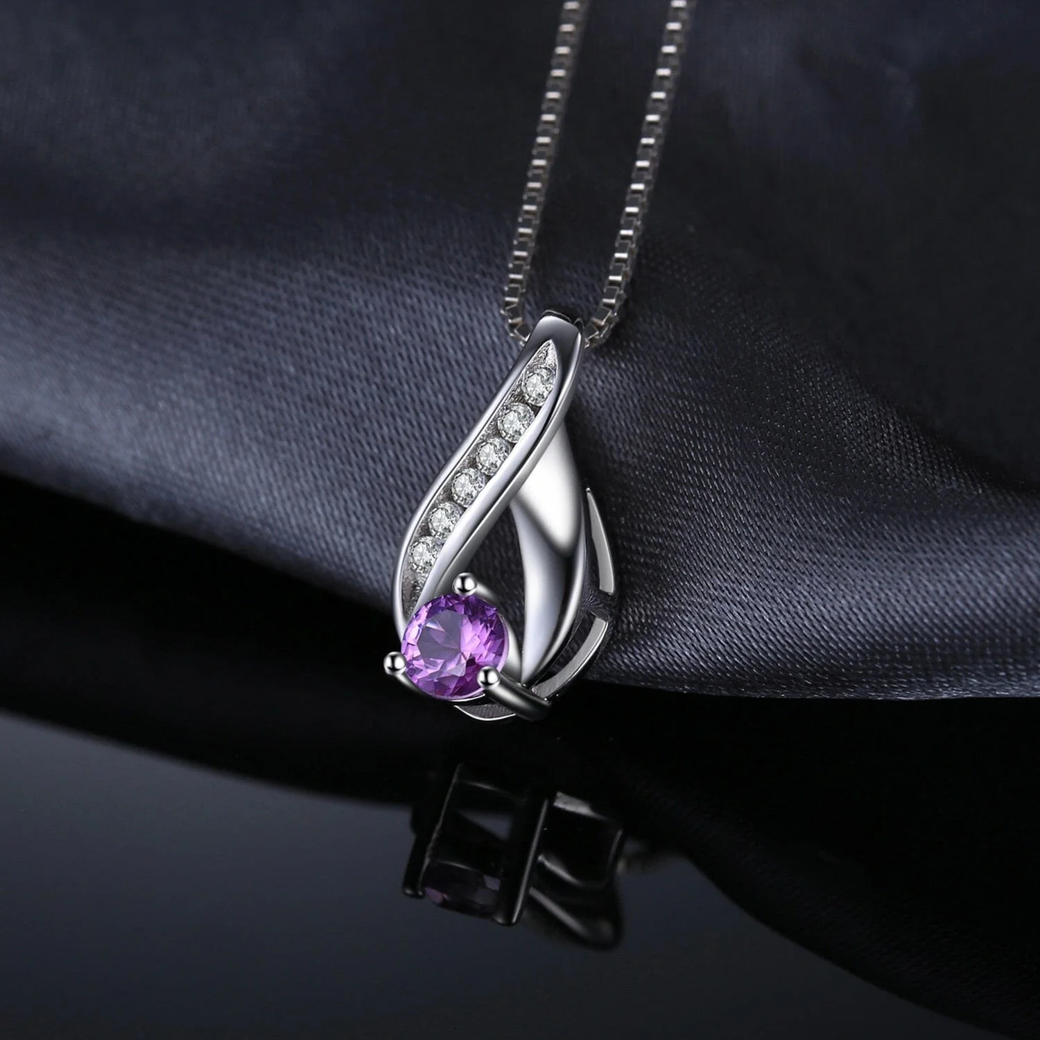 This necklace features a 925 Sterling Silver chain, designed to be both durable and elegant, while the geometric pendant showcases the natural beauty of the Amethyst stone.