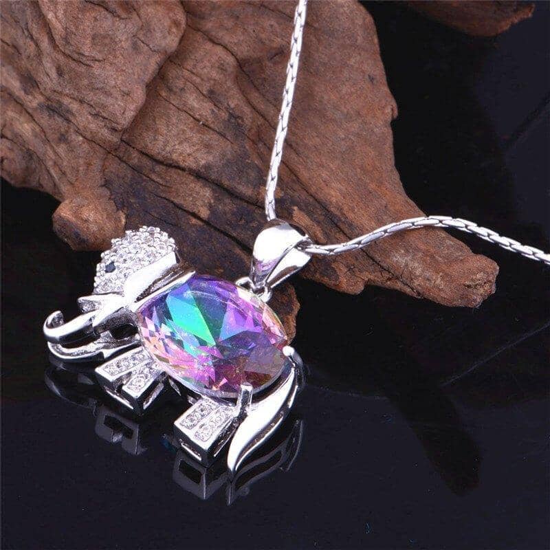 Discover the enchanting power of the Rainbow Mystic Topaz Elephant Necklace, a stunning piece that combines beauty and healing in every facet. For centuries, fire topaz has been revered in various cultures for its mystical properties, believed to provide deep emotional healing and spiritual protection.